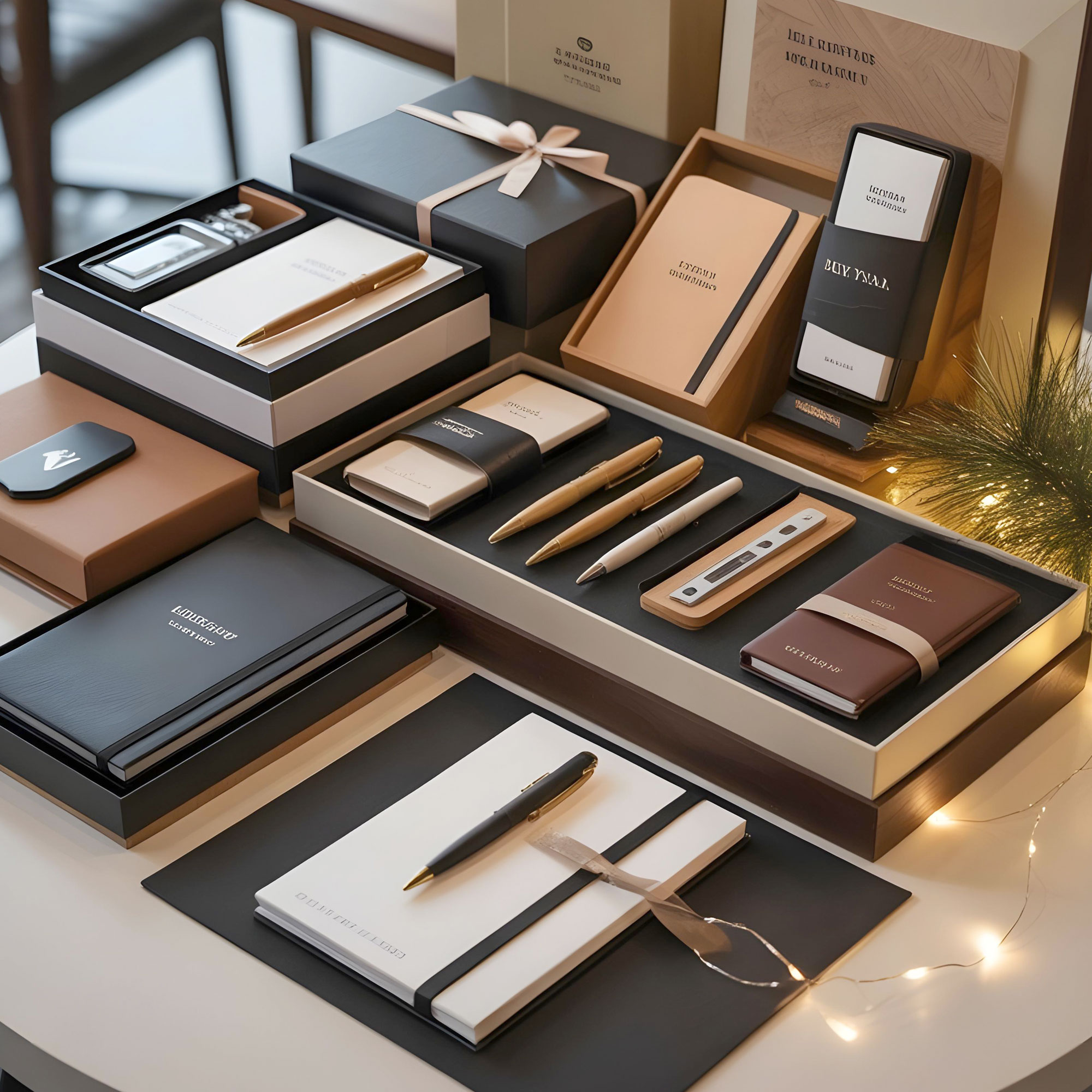 - Curated Gift Boxes: Customized gift hampers with branded diaries, pens, and accessories.