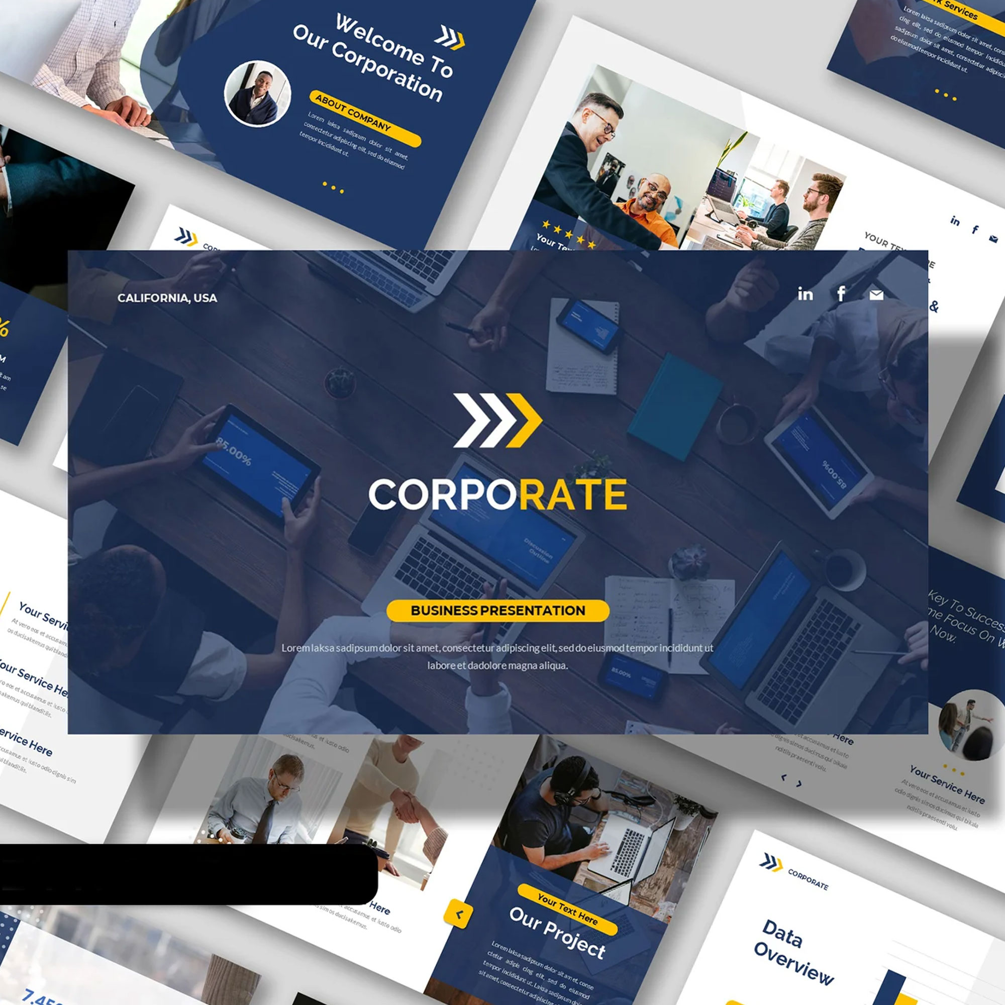 - Branded Slide Decks: Professionally designed presentations for business meetings.